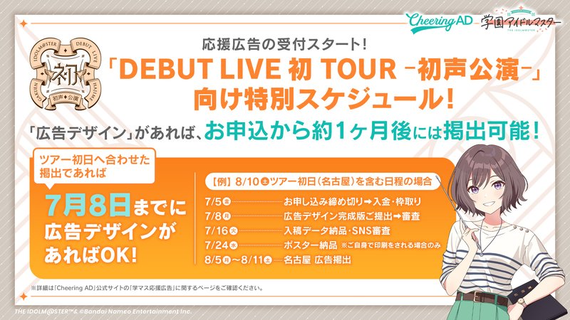 「DEBUT LIVE 初 TOUR -初声公演-にあわせて応援広告を出したい!」という皆さんへ特別スケジュールをご案内いたします。