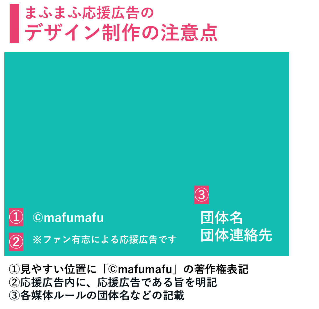 応援広告を掲出する際は、まふまふ応援広告規程を守っていただく必要があります。