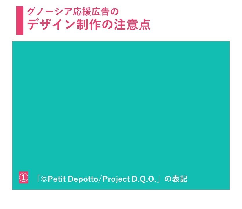 ① ⒸBe sure to include the copyright “©Petit Depotto/Project D.Q.O.” in the support advertisement