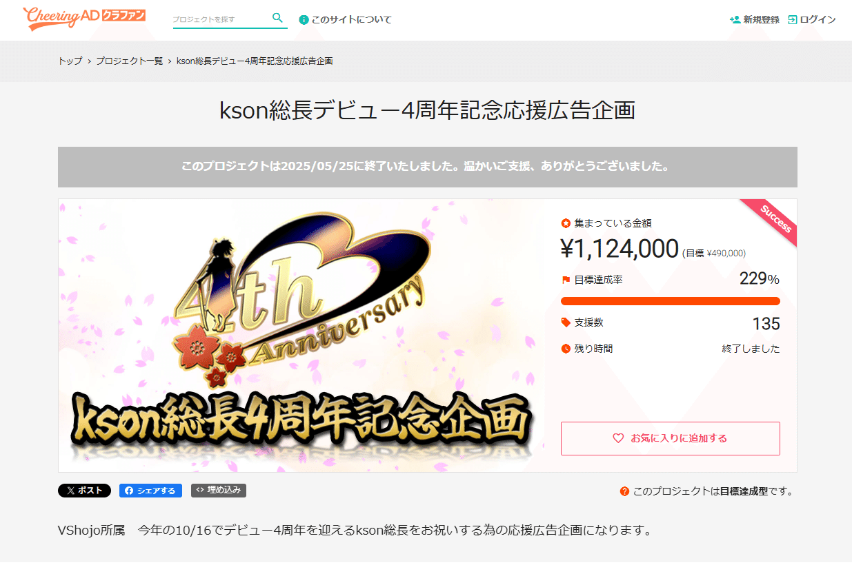 This time, we will introduce a very popular VTuber who celebrated her 4th anniversary since her debut on October 16, 2025, and has many fans not only in Japan but also overseas.President ksonIntroducing examples of support advertisements to celebrate!