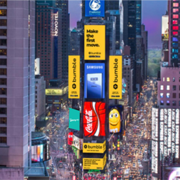 -Broadway와 48th Avenue의 광고판은 전면 및 후면 방향으로 긴 시야를 자랑하는 양면 디지털 장치입니다. 그것은 많은 관광 명소와 연결되어 있으며 Times Square의 가장 바쁜 지역에 위치하고 있으며 매일 수십만 명의 보행자를 볼 수 있습니다. 광장의 중심부에 독특한 모양으로, 광고판은 연간 1 억 5 천만 명이 넘는 방문객의 소셜 미디어에 노출 된 채로 남겨 둡니다.