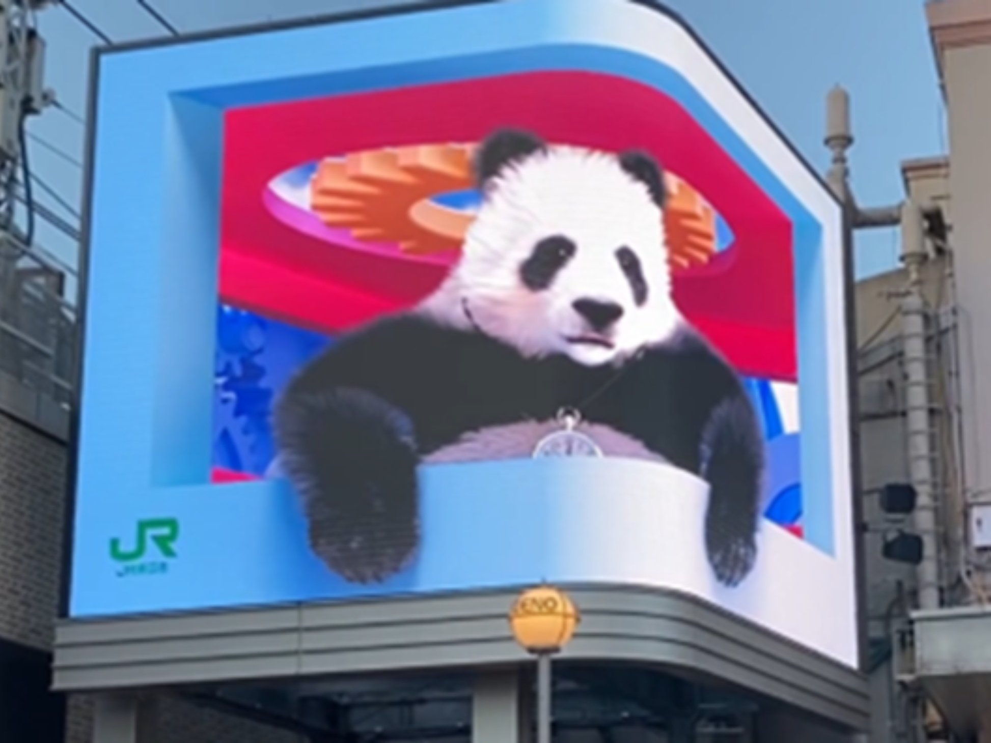 - 上野駅広小路口に巨大なL字型サイネージが誕生。特徴的な形状を活かして3D映像を効果的に放映することも可能です。(16:9の2D映像素材も対応)