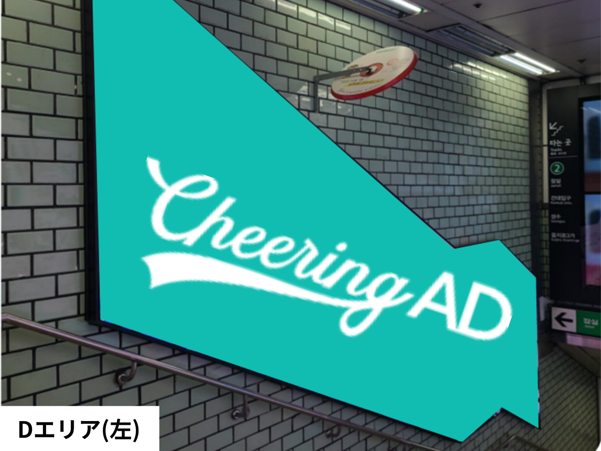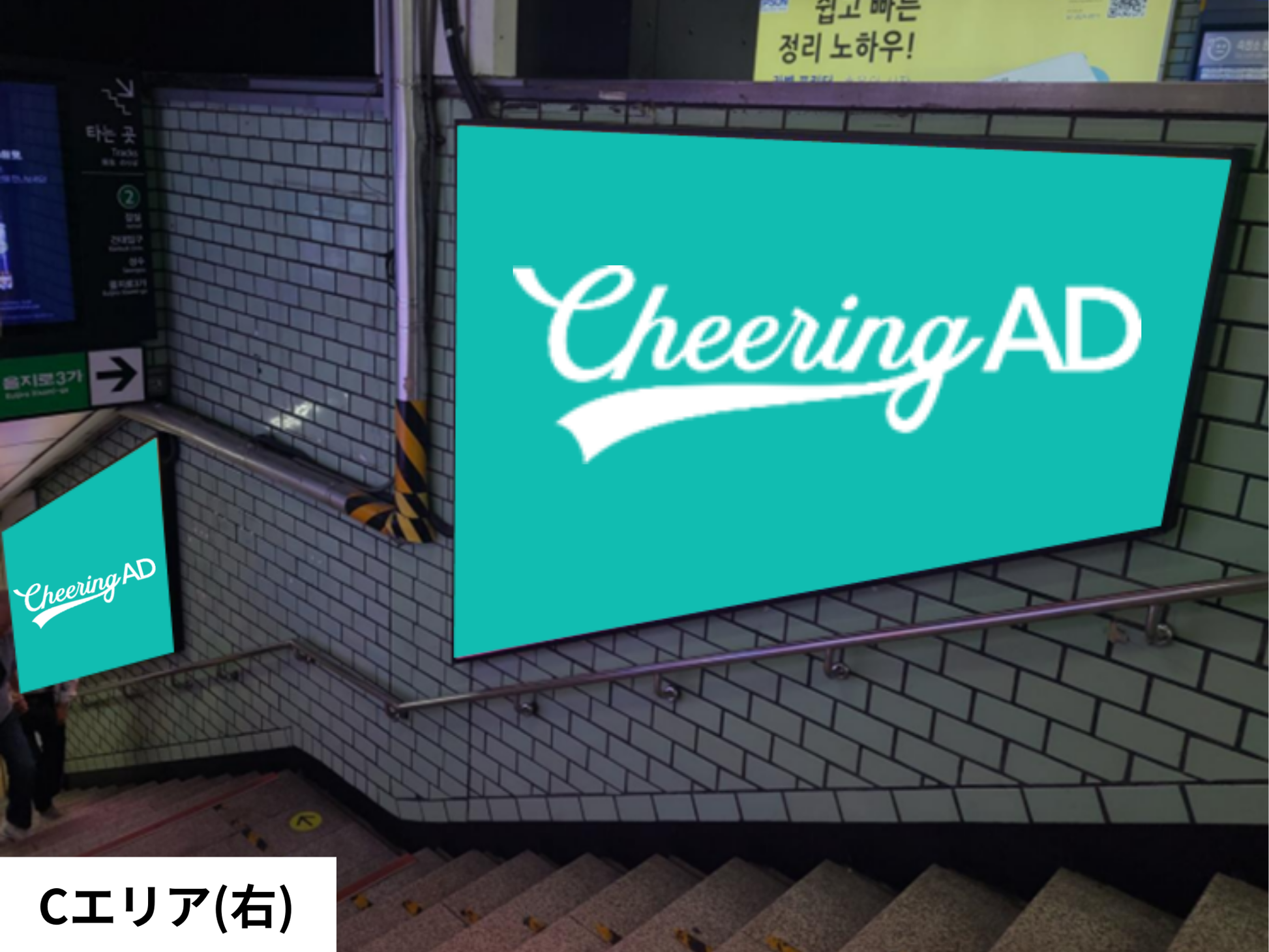 利用站台楼梯的墙面,向所有乘客展示可使用该车站的数字标牌