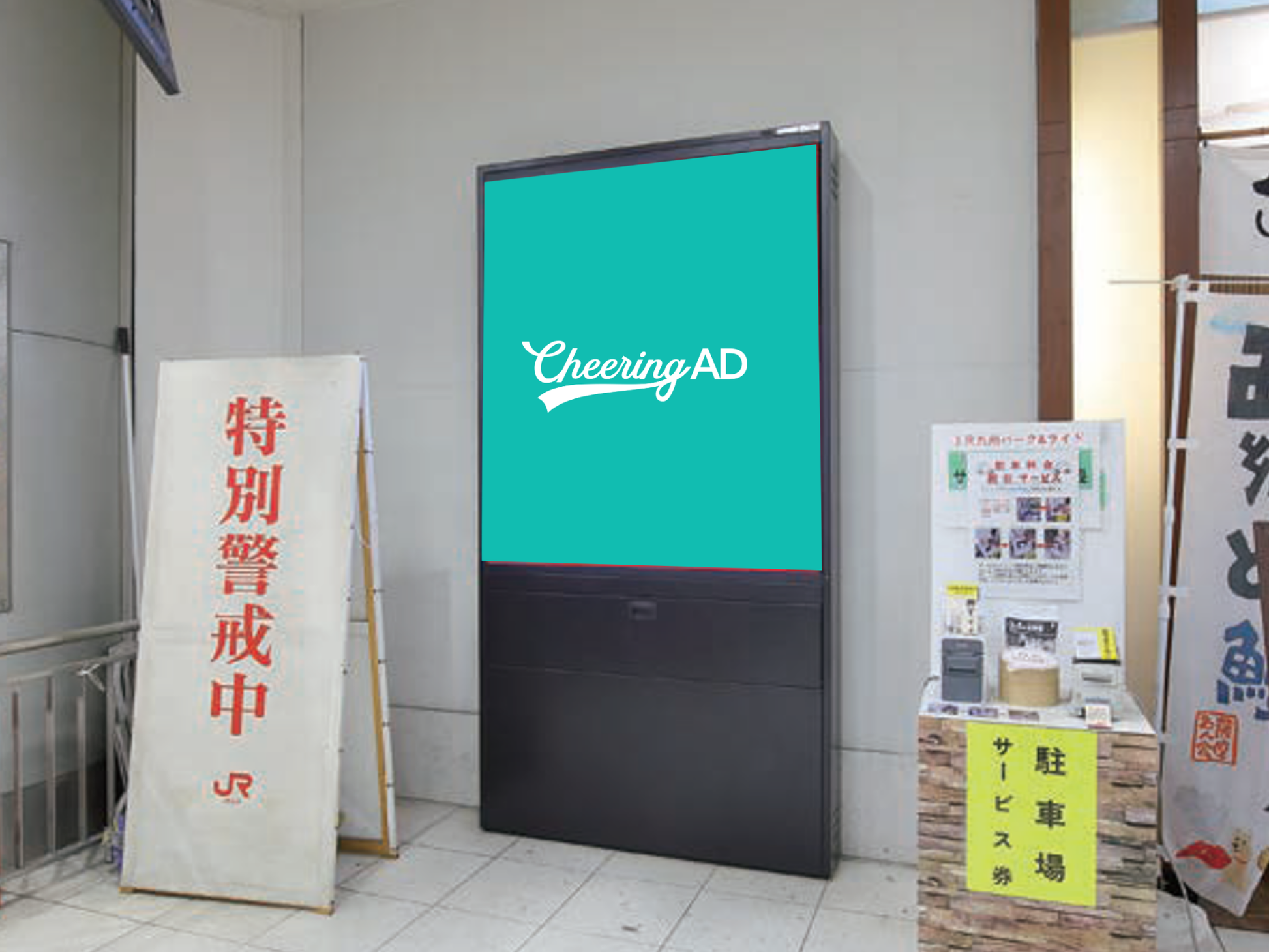 新幹線改札内から在来線への乗り継ぎ通路横にデジタルサイネージを設置しました。ビジネスマンから観光客まで幅広い層に向けて訴求できます。